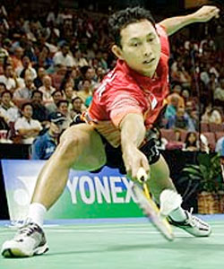 Bertanding di Istora SenaÂyan, Jakarta, kemarin. Sony gaÂgal menembus babak utama seÂtelah ditumbangkan secara tragis oleh pemain Taiwan, Chou Tien Chien 24-26, 17-21. Pemain PeÂlatnas Cipayung itu tidak tampil prima lantaran dibekap cedera pingÂgul yang mampir selama saÂtu tahun.