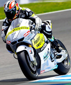 test rider HRC Kousuke Akiyoshi dipercaya menempati posisi kompatriotnya mendamÂpiÂngi Simoncelli membawa benÂdeÂra Honda Gresini.