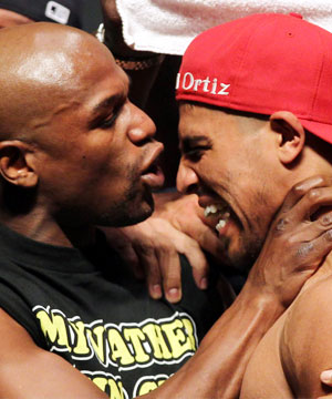 Sementara itu, Ortiz yang meÂmiliki rekor 33 pertandingan deÂnÂgan 29 menang, dua seri dan dua kali kalah itu menyerang baÂlik Mayweather yang memiliki rekor 41 menang tanpa terkalahÂkan.