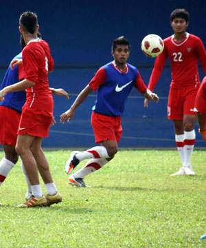 Dalam sesi latihan sore kemaÂrin, empat amunisi tajam IndoneÂsia, Lukas Mandowen, FerdiÂnand Sinaga, Titus Bonai dan PaÂtrick Wanggai berlatih terpisah. MereÂka di drill oleh pelatihnya baÂgaiÂmana melakukan variasi serangan di depan gawang lawan.