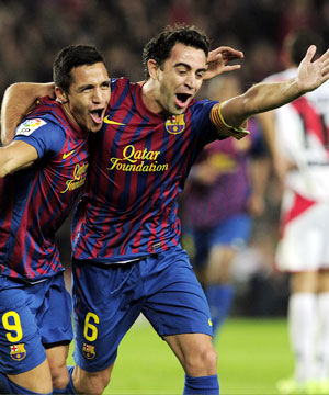 Alexis Sanchez menerima umÂpan terobosan dari Xavi HerÂnandes. Dengan skill invidunya yang menawan, penyerang asal Meksiko itu berhasil melepaskan tembakan melengkung dan meÂngarah ke sudut kanan atas gaÂwang Vallecano.