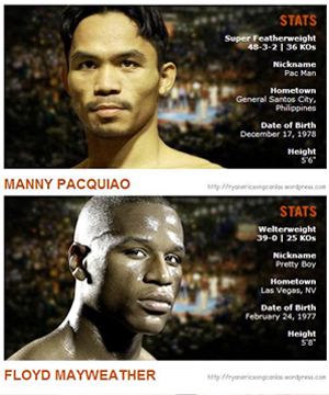 Mayweather biasanya meminÂta delapan pekan untuk berlatih, dan beberapa pekan untuk proÂmosi sehingga waktu pertarungÂan akan semakin molor. Jika akÂhirÂnya Mayweather tidak bisa naik ke ring, Pacquiao yang saat ini mengantongi delapan gelar juara dunia tinju berbeda, keÂmungÂkinan akan mengalihkan duelnya menghadapi juara welÂterweight Timothy Bradley atau duel keempat dengan Juan MaÂnuel Marquez. [Harian Rakyat Merdeka]