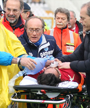 Seorang rekan setimnya, PasÂquale Schiattarella, yang meliÂhatÂnya terjerembab sendiri, langÂsung berteriak-teriak meminta tim medis masuk. Ia juga tampak meminta wasit menghentikan perÂtandingan, tapi sempat terÂabaiÂkan karena wasit dalam poÂsisi membelakangi mereka.