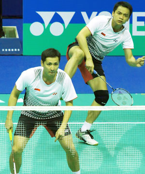 Kedua pasangan ganda putra tersebut, Alvent Yulianto/Hendra Aprida Gunawan dan Angga PraÂtama/Ryan Agung Saputra.