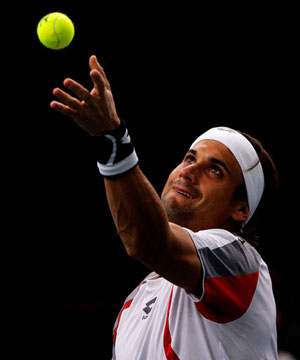 Petenis unggulan keempat David Ferrer sukses mengÂamanÂkan tiket perempat final turÂnaÂmen Paris Masters 2012 setelah meÂmeras keringat di babak keÂtiga melawan petenis Swiss, StaÂnislas Wawrinka.