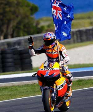 Pada musim yang sama, StoÂner berhasil menang di tiga seri beÂrunÂtun, Laguna Seca, Brno, dan MiÂsano, sehingga mulai di perhiÂtungÂkan di dunia balapan MotoGP. Akhirnya Stoner jadi juara dunia di tahun 2007 dengan meraih 10 kali kemenangan, 14 podium, dan lima kali pole position. [Harian Rakyat Merdeka]