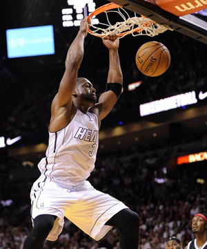 Wade yang dihukum karena menendang guard Charlotte Bobcats, Ramon Sessions, di laga hari Rabu lalu, kembali ke line up Heat. Point guard 30 tahun itu secara keseluruhan menyumbang 24 poin, enam rebound, dan empat assist. Namun itu tak cukup untuk menghindarkan Heat dari kekalahan.