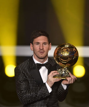 Pada penyerahan pengharÂgaÂan, Messi tampil dengan jas berÂcorak titik-titik putih serta mengÂgunaÂkan dasi kupu-kupu yang mengÂgantung di kerah. Bersama BarÂcelona Messi sudah mengeÂmas 92 Gol, gol terakhir dicetakÂnya di gawang RCD Espanyol SeÂnin (07/01/13) dini hari WIB di menit ke-29 melalui titik putih.