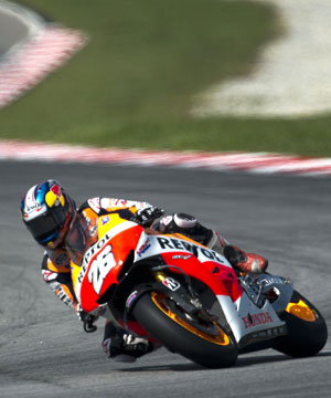 Pedrosa mencatatkan waktu 2m00.100 detik. Pebalap Repsol Honda itu unggul 0.329 detik dari Jorge Lorenzo dan 0.442 dari Valentino Rossi.