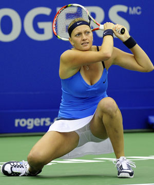 Petenis yang merupakan juara Wimbledon 2011 itu mengalahkan Wozniacki dengan skor 6-3, 6-4 dalam waktu 82 menit.