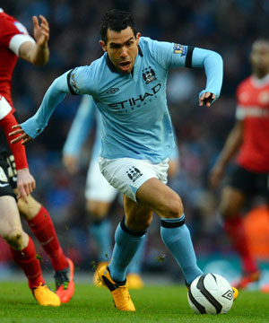 Dalam laga itu, Tevez memeÂcahkan kebuntuan. Berawal dari umpan matang Yaya Toure kepaÂda Silva, Silva menyontek bola, tapi bisa ditepis kiper Luke SteeÂle. Si kulit bundar sempat meÂngenai tiang dan memantul ke arah Tevez. Tanpa kesulitan, peÂnyerang asal Argentina itu menÂdorong bola ke dalam gawang.