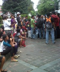 Warga korban penggusuran lahan Komisi Pemberantsan Korupsi (KPK) di Jalan Gang Gembira, Kelurahan Guntur, Setiabudi, Jakarta Selatan tetap bertahan di kediaman dinas Gubernur DKI Jakarta Joko Widodo (Jokowi) di Taman Suropati, Menteng, Jakarta Pusat, Minggu (14/4) meski hujan lebat mengguyur wilayah ini dan membasahi pakaian mereka. Temukan berita-berita hangat terpercaya dari Kantor Berita Politik RMOL di Google News.