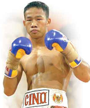 Daud Yordan meraih gelar juara dunia kelas bulu IBO setelah menang KO ronde kedua atas petinju Filipina Lorenzo Villanueva di Singapura, 5 Mei 2012. [Harian Rakyat Merdeka]