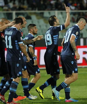 Dengan 69 poin di tangan, NaÂpoli hanya perlu dua kemenangÂan dari empat laga sisanya untuk fiÂnis di peringkat kedua musim ini. Itupun dengan catatan AC MiÂlan, yang menguntitnya di peÂringkat ketiga, selalu keok di liÂma laga terakhirnya, termasuk atas Catania malam ini (28/4).