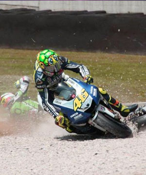 Meski tak cedera, dua rider itu bertabrakan di tikungan ketiga sehingga jatuh dan terpaksa gagal finis, namun mereka dikabarkan tak mengalami cedera serius. Ini adalah kali pertama Rossi gagal finis sejak kembali ke Yamaha pada tahun ini. Di empat seri sebelumnya, The Doctor selalu mendapatkan poin.