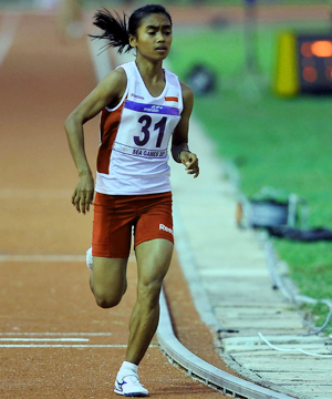 Atlet asal Semarang, Jawa Tengah ini berhasil mempersembahkan emas setelah menjadi yang tercepat pada lari nomor 10.000m putri di lintasan lari Wunna Theikdi Sport Stadium, Naypyitaw, kemarin.