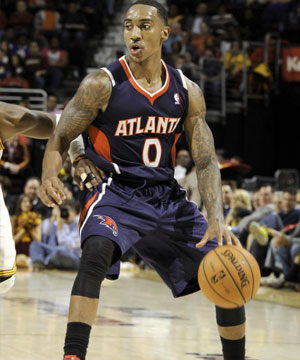 Guard Hawks, Jeff Teague, berhasil memanfaatkan bola