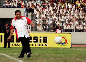 SBY menyampaikan selamat kepada Maung Bandung yang menjadi juara setelah mengalahkan Persipura dengan skor 5-3 melalui drama adu penalti, di Stadion Gelora Sriwijaya, Palembang, Jumat (7/11).