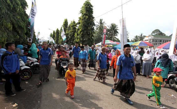 Tidak hanya sarung, para santri dan masyarakat yang mengikuti acara ini juga mengenakan kopiah dan jilbab untuk santri putri, sebagian peserta bahkan ada yang tidak bersandal alias nyeker. Sebelum jalan sehat, ribuan santri ikut melakukan senam aerobik dengan dipandu instruktur senam. Selain itu, drumband SMP Plus dan drumband SD Darussalam juga ikut memeriahkan lomba.
