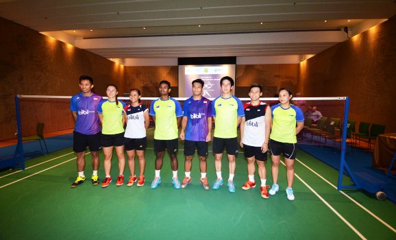 Pemain Bulu tangkis Indonesia dan Australia saat berfoto bersama sesudah pertandingan persahabatan menjelang pertandingan bulu tangkis Indonesia dan Australia Terbuka Di Kedutaan Besar Australia Jakarta, Kamis (26/5). Putu Wahyu Rama/RM