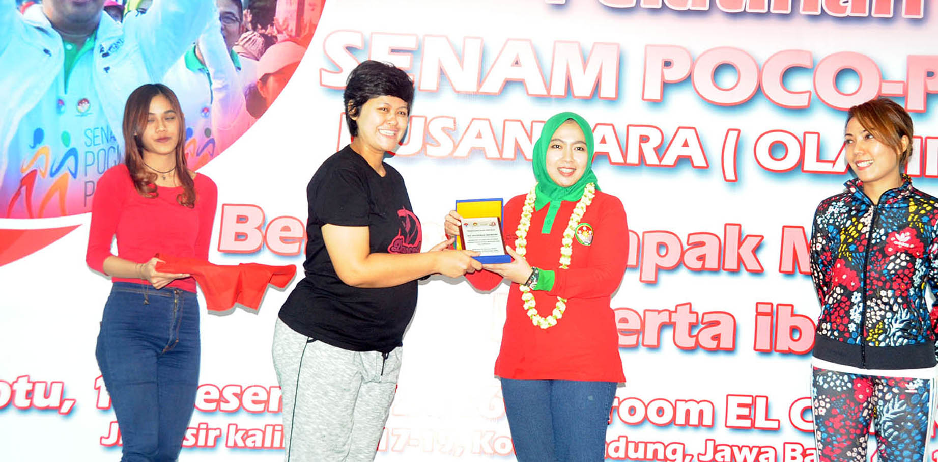 Penasehat Dharma Wanita Persatuan (DWP) Kemenpora, Shobibah Nahrawi (kedua dari kanan), membuka Pelatihan Senam Poco-Poco Nusantara Olahraga di Hotel El Cavana Pasir Kaliki Bandung, Sabtu (17/12). Kegiatan ini diselenggarakan oleh Federasi Olahraga Kreasi Budaya Indonesia (FOKBI) bekerjasama dengan Dharma Wanita Persatuan Kemenpora. Kemenpora