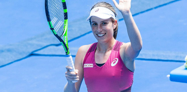 Konta mengantongi tiket perempat final usai mengalahÂkan petenis Rusia, Ekaterina Makarova 6-1, 6-4, kemarin WIB dalam pertandingan selama 69 menit.
