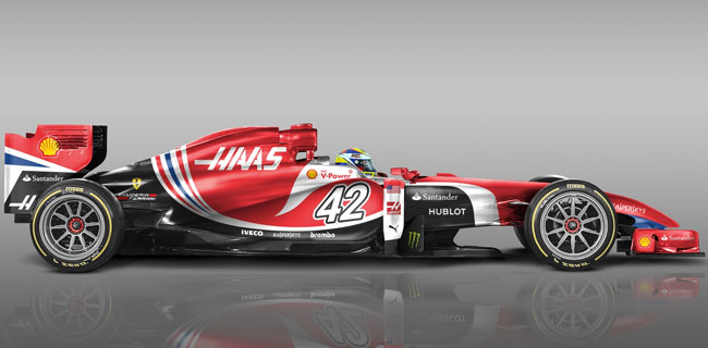 Foto tersebut diambil di pitÂlane sirkuit Barcelona, di mana para tim rival juga sedang memÂpersiapkan sesi uji coba mereka. VF-17 yang saat itu dikemudiÂkan oleh Romain Grosjean, terÂlihat menampilkan warna utama abu-abu, merah, dan hitam. Efek corak bergerigi juga terlihat pada bagian sirip hiu mobil. Selain Haas, kemarin juga menjadi hari peluncuran untuk tim Red Bull Racing dan Toro Rosso.