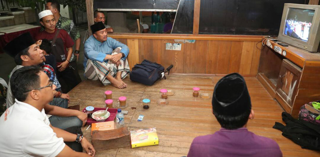 Dengan masih menggunakan sarung dan kopiah usai acara Buka Puasa Bersama dengan IKA UINSA dan warga Kedung Cangkring, Menpora bersama warga duduk di pos ronda untuk menyaksikan laga final Owi/Butet.