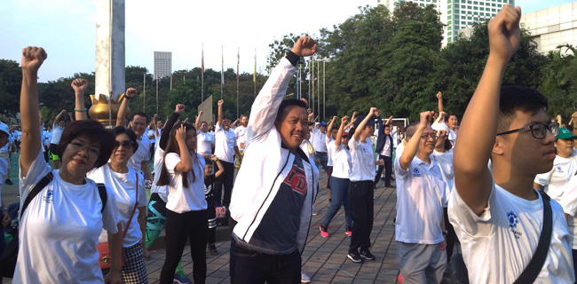 Selain senam massal, acara 'Family Sport Day for Peace' juga diisi jalan sehat dan sejumlah permainan menarik hingga petang nanti.