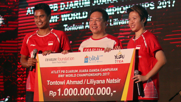 Ganda campuran Tontowi Ahmad/Liliyana Natsir kembali digelontor bonus Djarum Foundation dengan total nilai Rp 1 miliar.