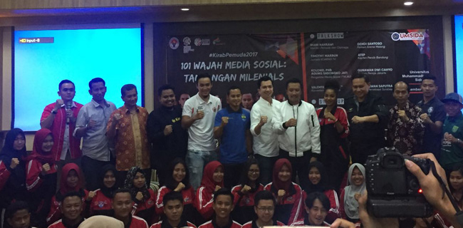 Setelah menjalani pawai kirab budaya dan menyapa warga Sidoarjo, mereka diberikan suguhan Talk Show dengan tema '101 Wajah Media Sosial: Tantangan Milenials' di Umsida, Sidoarjo, Sabtu petang (2/12). Keseruan dan keaktifan peserta sangat tampak dalam kegiatan yang dimoderatori oleh Valentino 'jebret' Simanjuntak.