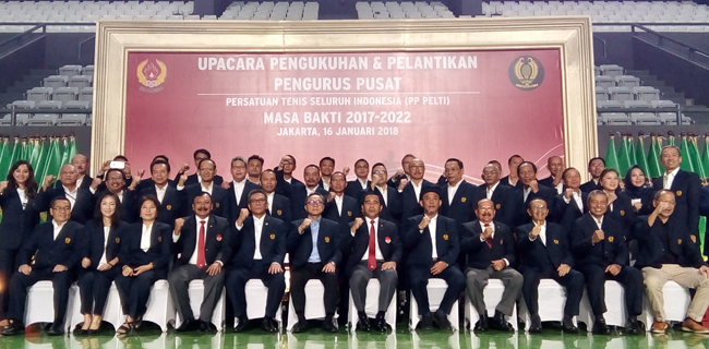 Upacara pengukuhan dan pelantikan yang dipimpin Ketua KONI Tono Suratman berlangsung khidmat di Stadion Tenis Indoor, Komplek Gelora Bung Karno, Jakarta, Selasa (16/1).