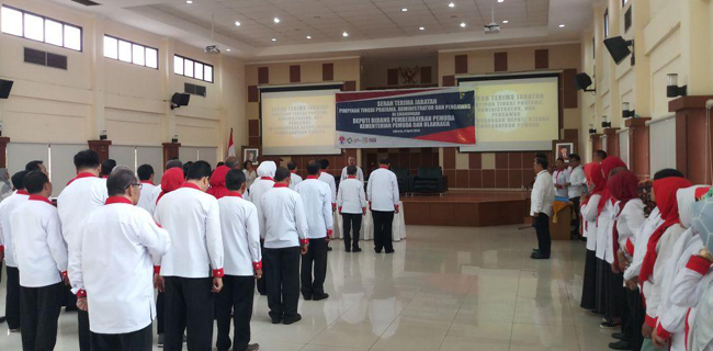 Sertijab yang melibatkan 23 pejabat eselon 2 hingga 4 ini disaksikan oleh Deputi Pengembangan Pemuda Kemenpora Prof. KH. Asrorun Niam dan Staf Ahli Menpora Bidang Ekonomi Kreatif Dr. Jonni Mardizal.