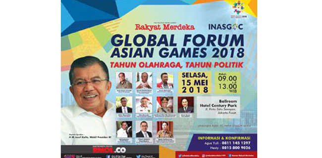 keynote speaker Global Forum Asian Games 2018 di Hotel Atlet Century, Jakarta, Selasa (15/5).