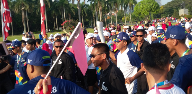 Obor Asian Games diarak menuju Stadion Utama Gelora Bung Karno (GBK), Senayan, Jakarta.