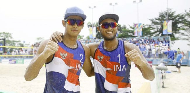 Tim voli pantai putra Indonesia yang diperkuat Gilang Ramadhan/Danangsyah Yudistira Pribadi sukses meraih kemeÂnangan dua set langsung atas tim voli pantai putra Oman yang diperkuat Nouh Rashid Said Al Jalbubi/Mazin Sulaiman Zahran Al Hashmi.