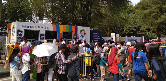 Kantor Berita Politik RMOL di lokasi, antrean terjadi di tiga loket yang disediakan panitia Asian Games 2018. Yakni pada loket 4, 5 dan 7, dan yang dijual merupakan tiket festival Asian Games.