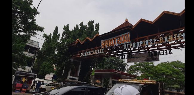 Kali ini spanduk dukungan dipasang di gerbang perbatasan Provinsi DKI Jakarta dan Provinsi Banten, Sabtu (8/12).