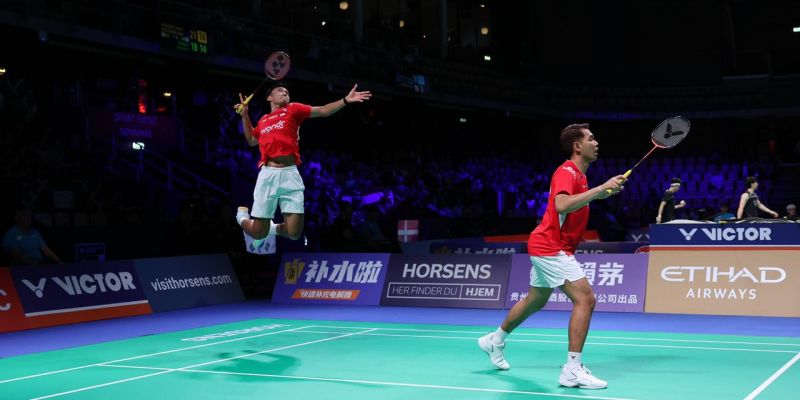Sebelummya pasangan Fajar Alfian/Muhammad Shohibul menunjukkan dominasi atas Abderrahmie Belarbi/Koceila Mammeri dengan skor 21-14, 21-8.