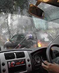 4. Nyalakan lampu depan mobil, untuk menandakan keberadaan anda di jalan raya. Dan ingat, nyalakan lampu utama, bukan lampu hazzard. Penggunaan lampu hazzard saat hujan malah membahayakan, karena pengendara lain tidak akan tau anda ingin berbelok ke kanan atau kiri. Gunakan hazzard hanya saat Anda berhenti.
