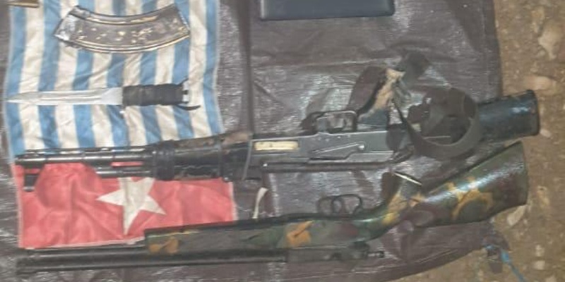 Tak hanya melumpuhkan, TNI juga mengamankan sejumlah barang bukti, antara lain satu pucuk senjata organik AK-47, satu senjata rakitan, puluhan butir amunisi, busur dan anak panah, serta bendera Bintang Kejora dan alat komunikasi.