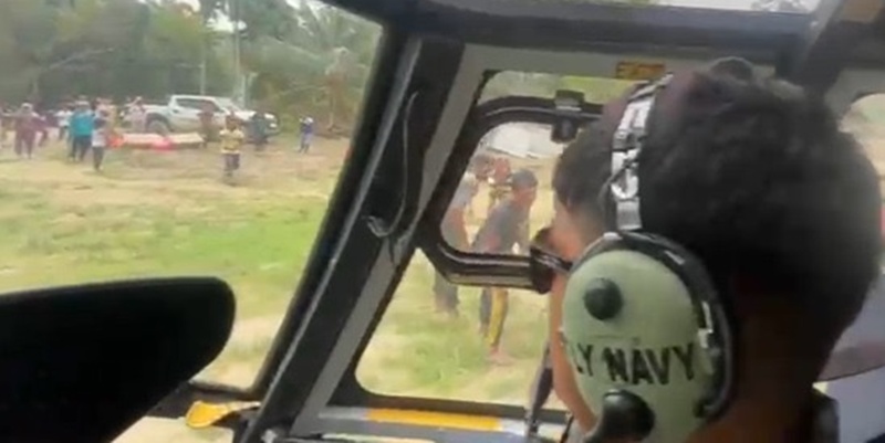 Helikopter TNI AL mendarat di Desa Lubuk Sidup, Kecamatan Sekerak, Aceh Tamiang pada Selasa, 6 Januari 2026. (Foto: Dispenal)