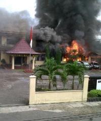 Hampir seluruh ruangan di Mapolres OKU hangus terbakar.