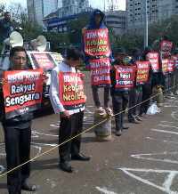 Para demonstran membawa spanduk bertuliskan " Tolak Kenaikan BBM, Kebijakan Neolib SBY" dan "BBM Naik Rakyat Sengsara". Kedua spanduk itu dibentangkan ke arah Istana Negara.