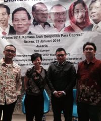 "Polling atau survei capres lebih mendominasi informasi ke publik seputar capres 2014. Padahal pemahaman geopolitik pun penting sebagai info bagi publik, bahwa Pemilu tidak pernah steril dari kepentingan asing," papar Dimas dalam diskusi yang mengangkat tema "Ke mana Arah Geopolitik Para Capres?" itu.