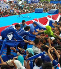 Di hadapan ribuan masa kampanye, Ibas kemudian menyampaikan salam perjuangan Demokrat dan disambuat antusias massa. "Salam Satu Jiwa Parta Demokrat benar-benar jitu dalam menjalankan program-program pro rakyat. Mari maju bersama Demokrat, jangan mau kita mundur kebelakang. Banyak yang sudah dirasakan. Beri Bukti, Bukan Janji," ajak Ibas disambut optimis massa.