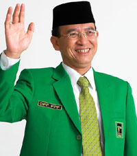 Kedatangan Ketua Umum Partai Persatuan Pembangunan (PPP), Suryadharma Ali (SDA) dan wakilnya, Djan Faridz dalam kampanye akbar Partai Gerindra di Gelora Bung Karno (GBK), Jakarta, (Minggu, 23/3) menyedot paerahtian peserta kampanye.