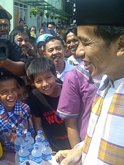 "Jokowi ngga ada di sini Bu," lontar seorang bapak paruh baya.