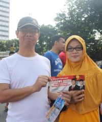 Jaringan Indonesia Pro-Hatta melakukan gebrakan Aksi Nyata Sejuta Stiker mendukung Pencalonan Prabowo-Hatta yang berlangsung pada Car Free Day, di Bundaran Hotel Indonesia, Jakarta, kemarin (Minggu, 27/4).