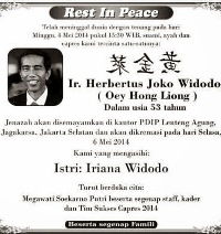 Sebelumnya, beredar gambar ucapan dukacita atas nama Ir Herbertus Joko Widodo alias Oey Hong Liong. Disitu dituliskan kematian Jokowi terjadi pada tanggal 4 Mei 2014.